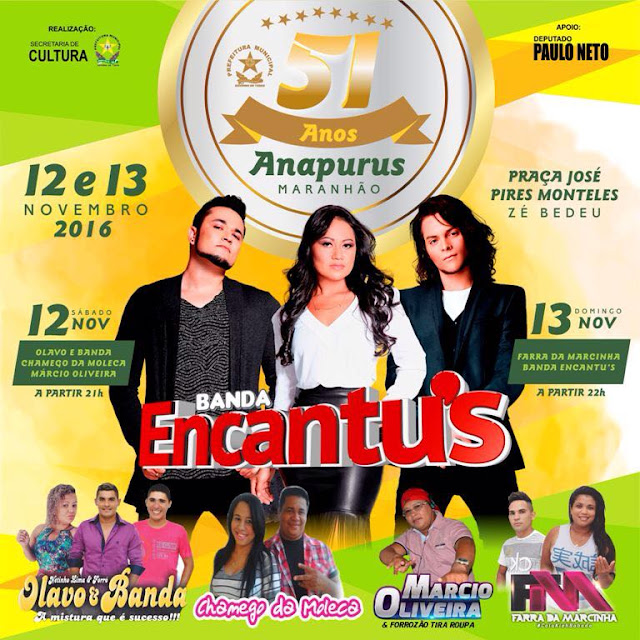 No segundo dia tem: Banda Encantu's, que dividirá o Palco com a Farra da Marcinha, finalizando o evento.